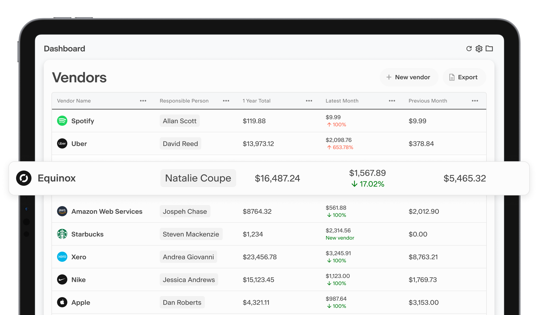 There are many things that can be built on top of accurate and consistent merchant information such as a vendor management dashboard for finance teams as shown below.